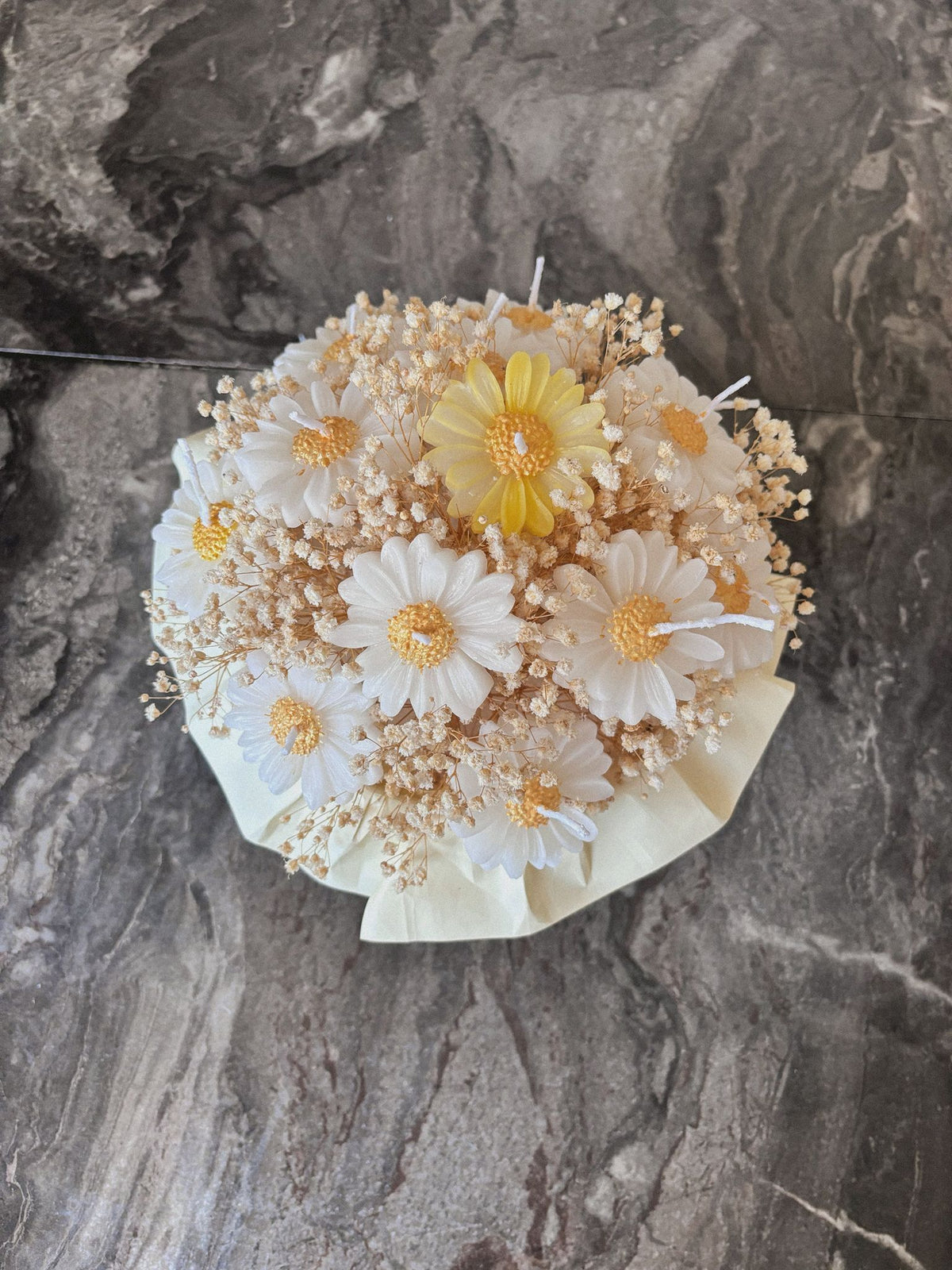Beyaz Papatya Mum Buketi - beyaz